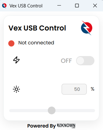 This software is a desktop application that was developed with Thuder Optics. Using a USB-C connection, the software can be used for controlling a laser via the Unknown Labs Vex board, providing precise brightness and operational control for laboratory or experimental setups.