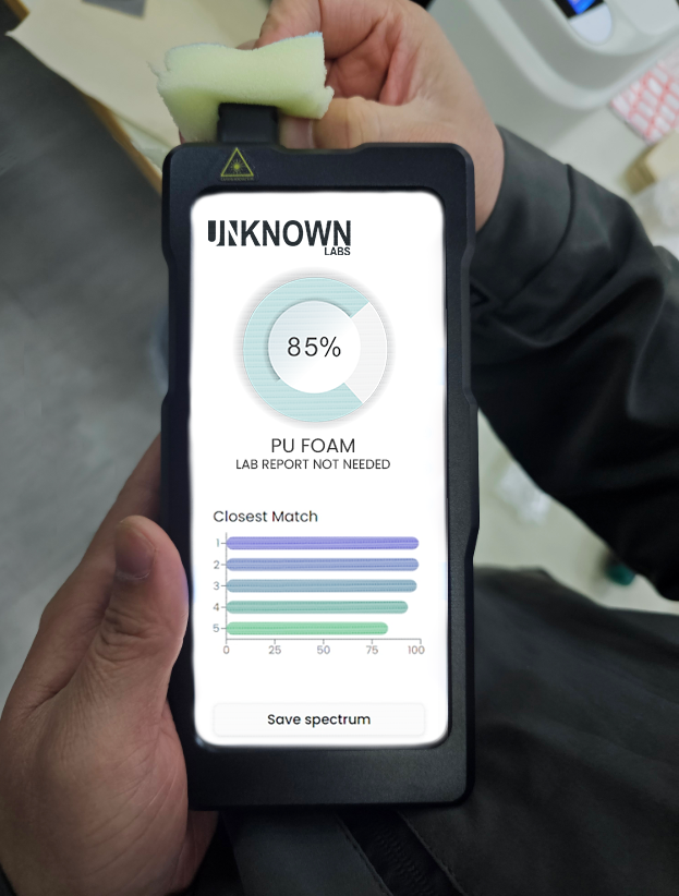 Unknown Labs offers next generation solutions for today’s problems. We blend hardware, AI powered software and a secure cloud environment to give clients not just answers, but a deep understanding. One reading from your devices is enough for our tools to tell you all there is to know about your material and enable other insights to your identification.